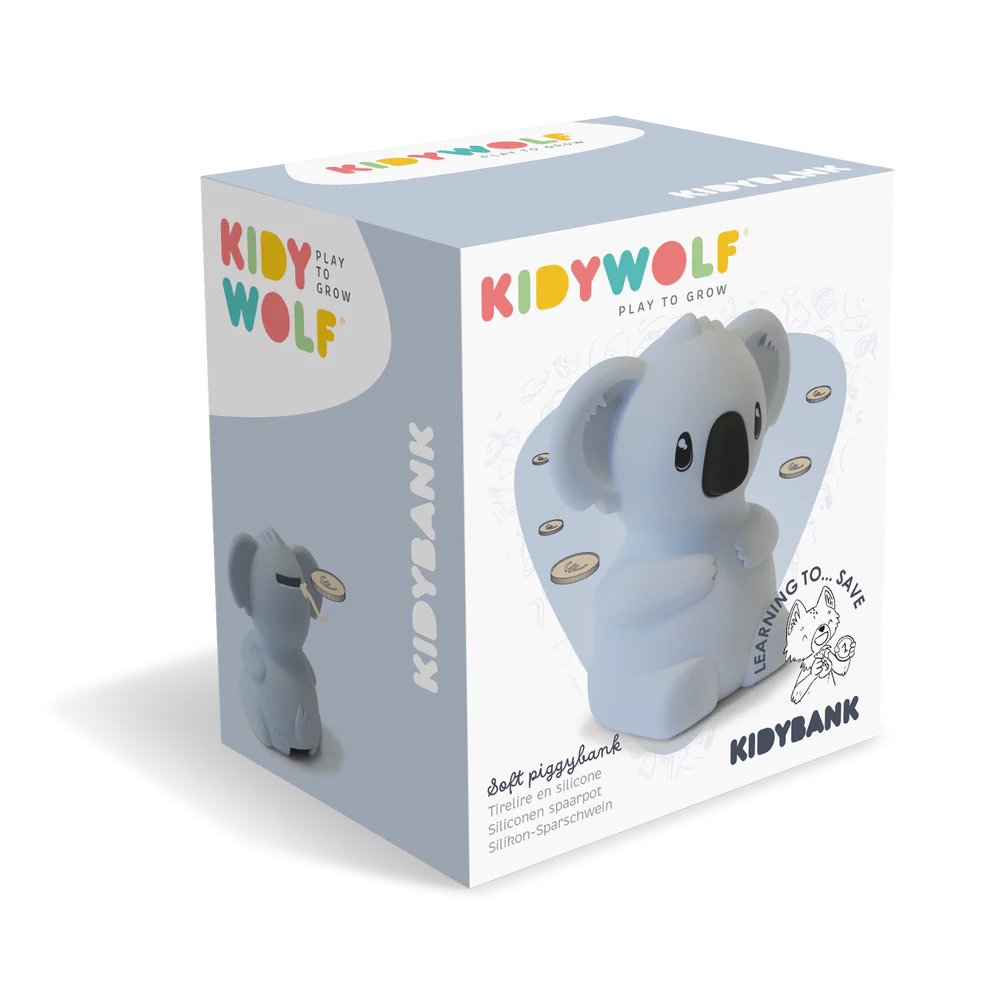 Kidywolf KIDYBANK Silikonska kasica za djecu – Koala donosi savršen spoj igre, učenja i praktičnosti, pretvarajući prve djetetove uštede u zabavno i emotivno iskustvo. Mekana silikonska tekstura, sigurna izrada i simpatičan oblik čine je ne samo dekorativnim dodatkom, nego i prvom malom lekcijom o odgovornosti i čuvanju novca. Idealna je za svaku dječiju sobu i za roditelje koji žele potaknuti djecu na učenje vrijednosti štednje kroz igru.
