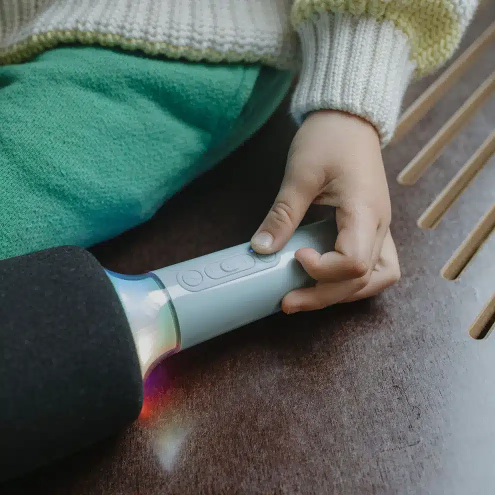 Kidywolf KIDYMIC Bežični karaoke mikrofon pretvara svaki trenutak u zabavan porodični nastup zahvaljujući mogućnosti reprodukcije muzike preko Bluetooth veze, ugrađenom zvučniku i efektima za promjenu glasa. Djeca mogu pjevati svoje omiljene pjesme, imitirati različite glasove i kreirati vlastite nastupe uz šarene LED svjetlosne efekte. KIDYMIC je lagan, bežičan i savršen za kreativnu muzičku igru kod kuće, u pokretu ili na rođendanskim zabavama.