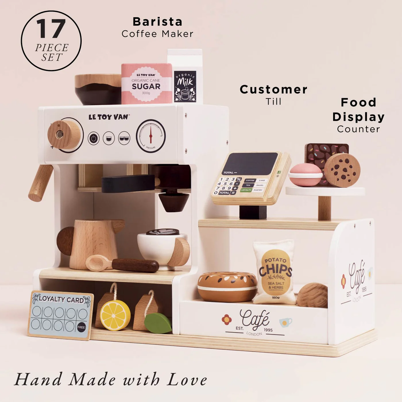Le Toy Van Set – Barista Café Shop inspiriše djecu da kroz igru uloga postanu mali baristi, razvijajući maštu, koordinaciju i socijalne vještine uz predivan drveni kafić izrađen od održivog FSC® drveta.