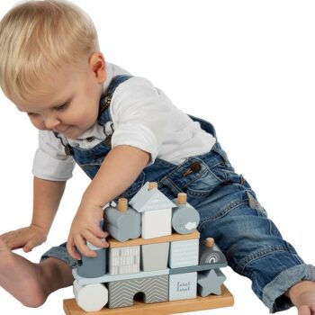 Label Label Drvena didaktička slagalica kućica sastoji se od blokova za slaganje u različitim oblicima, bojama i nivoima kako bi vaše dijete moglo izgraditi svoju malu kolibu iz snova.