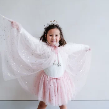 79,00KMMimi & Lula suknja od tila – Zvijezda padalica pretvara svaki korak u čaroliju! Ova bajkovita suknja od mekanog rozog tila ukrašena zlatnim zvjezdicama poziva djevojčice da sanjaju veliko i plešu slobodno. Savršena za igru, zabave ili posebne trenutke u kojima žele da zablistaju kao prava zvijezda!